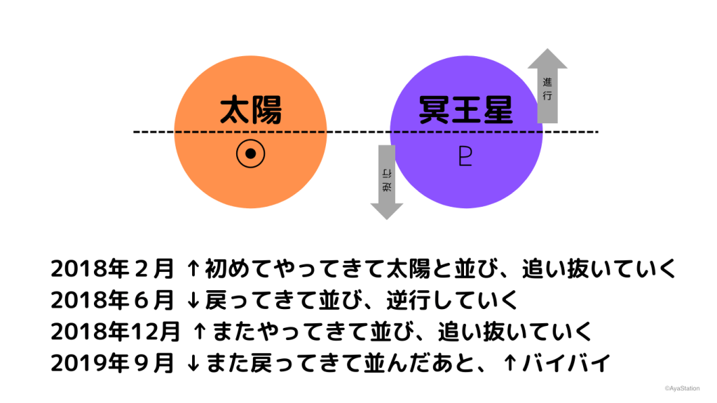 2018年6月、↓追い越していった冥王星が戻ってきて、一時的に過去に戻る